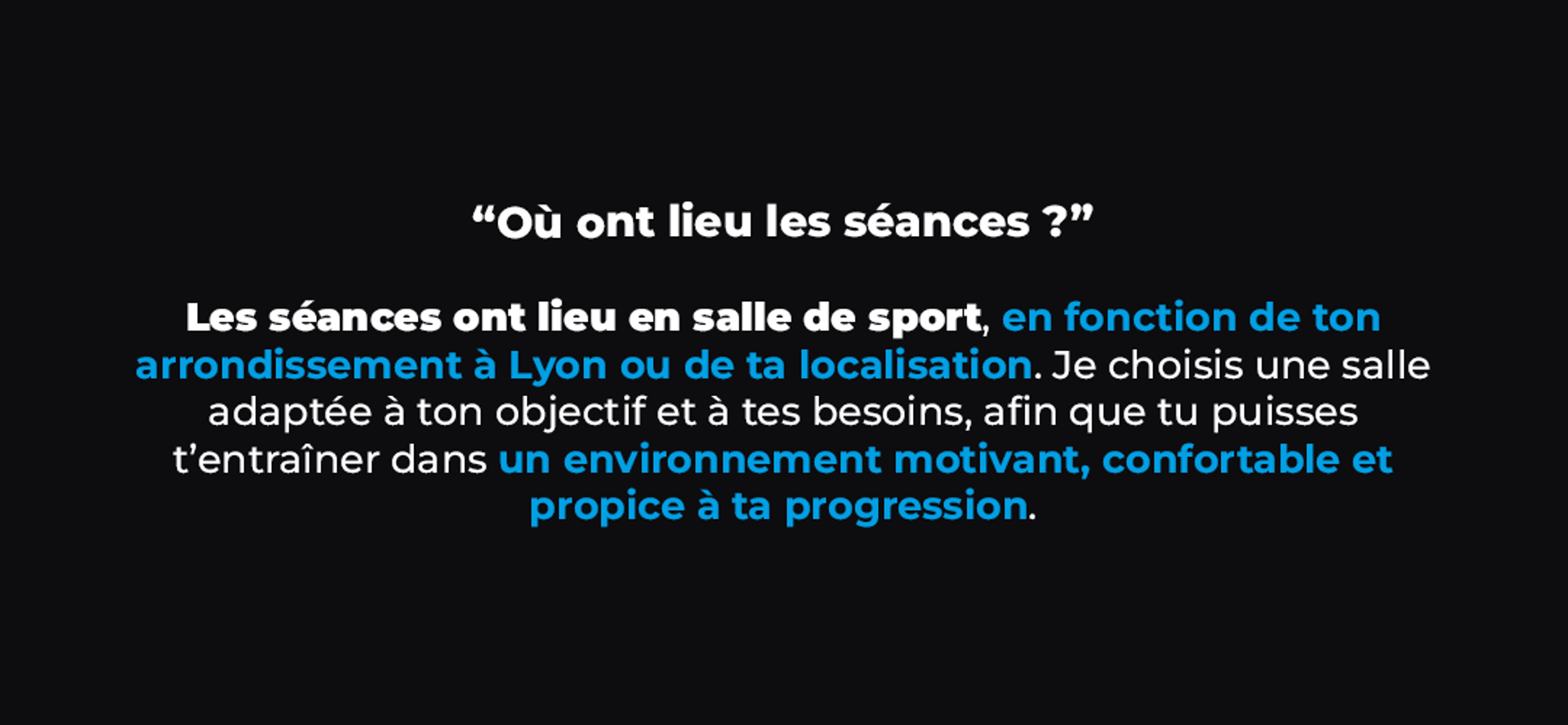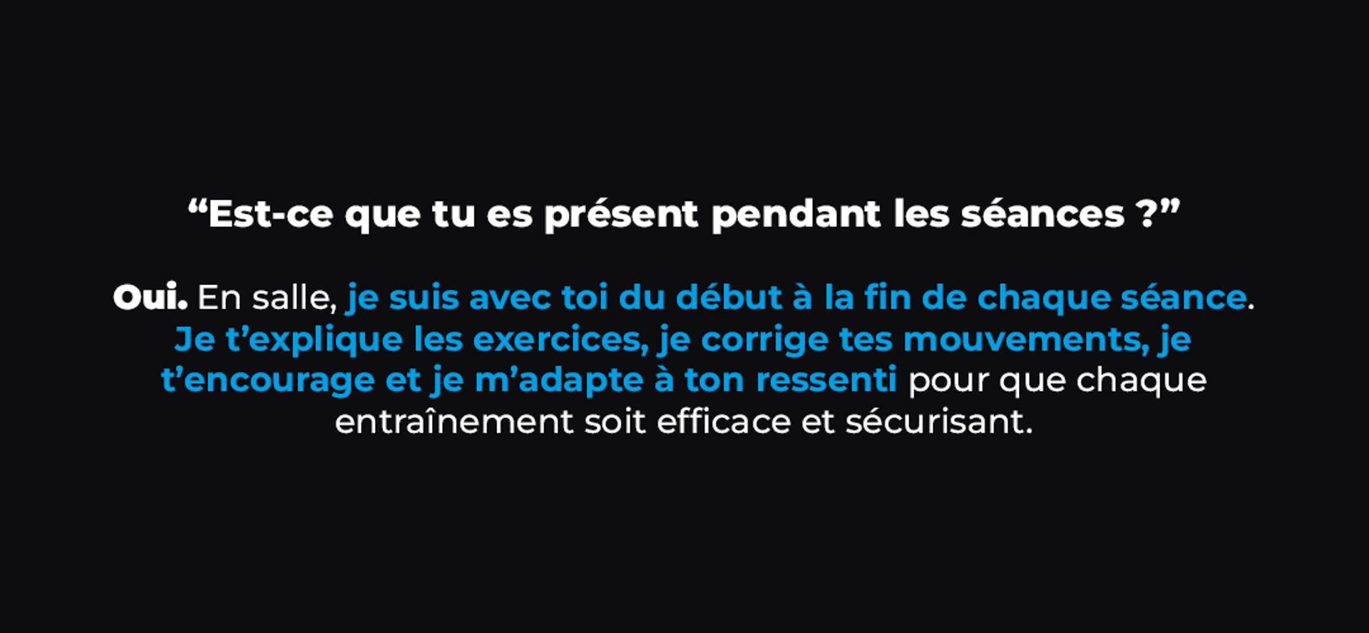 En salle, je suis avec toi du début à la fin de chaque séance : je te guide, je te corrige et je te motive pour que tu progresses en toute sécurité et avec confiance.